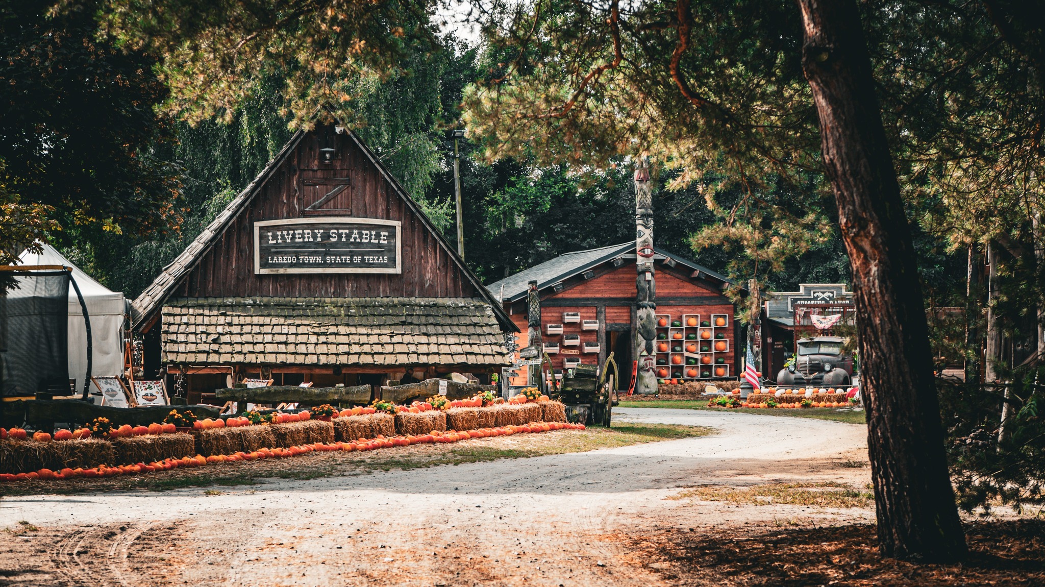 Amerykańska Farma Dyniowa - westernowe miasteczko dyniowe, pole dyniowe, sprzedaż dyń, atrakcje dla rodzin z dziećmi, konie, osiołki, alpaki i inne zwierzaki